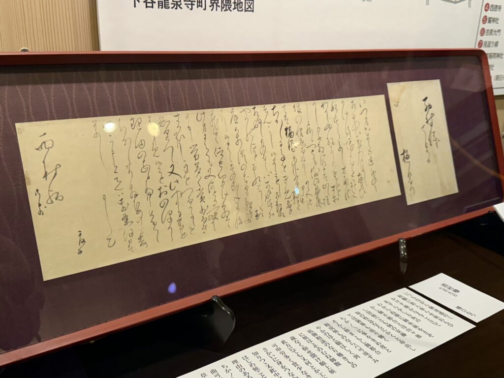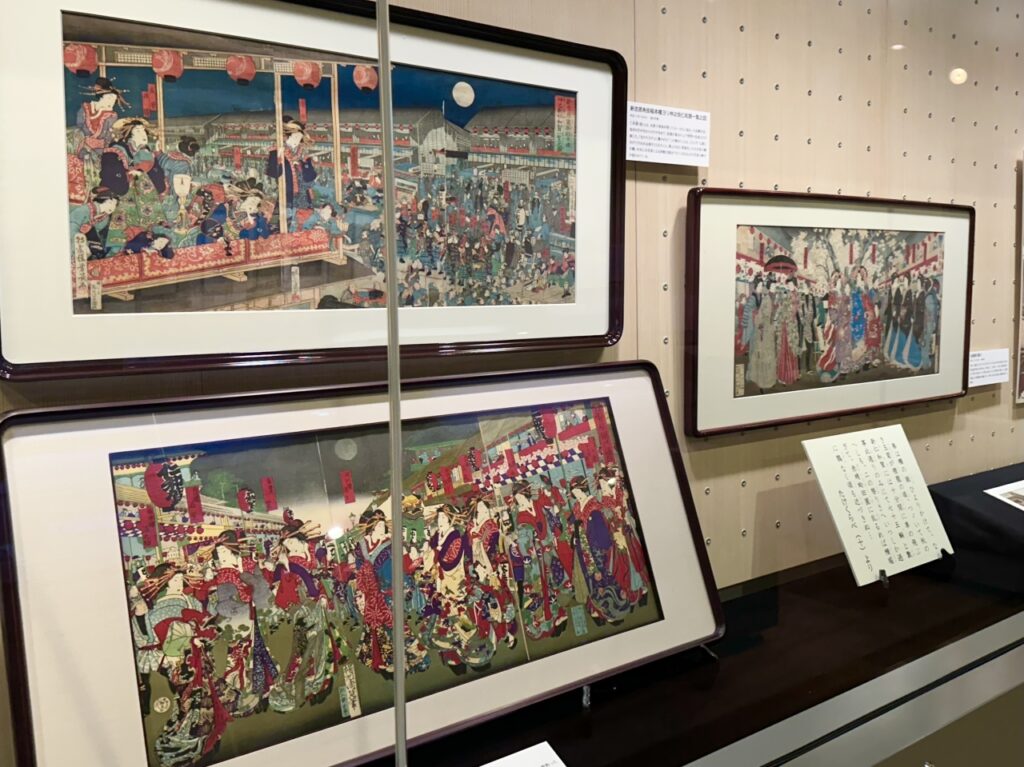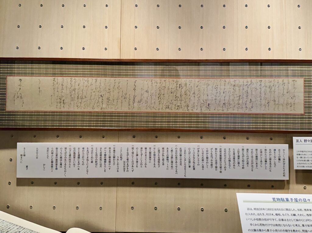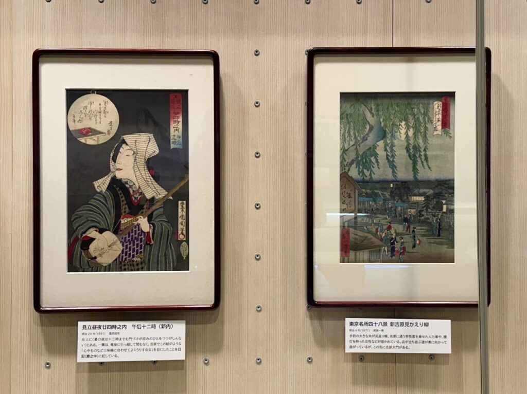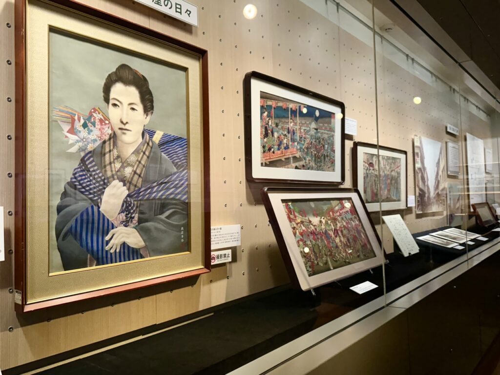 If you go east along Chayamachi Street, you will come across a pillar marking the location of the emergency gate to Yoshiwara Ageyamachi. In addition to viewing the special exhibition, why not take the time to imagine what the Yoshiwara pleasure quarter looked like from Ichiyo’s tenement house?