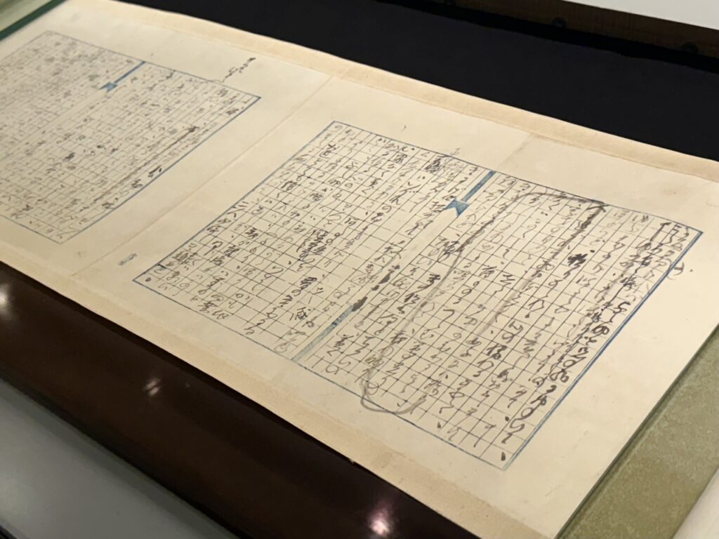 At the end of the venue , there are materials related to “Takekurabe,” including unfinished drafts, the origami book “Takekurabe Emaki,” and even books containing the manuscripts published in the “Bungei Club” magazine . The unfinished drafts are significantly different in content from the finished versions, so you’re sure to make new discoveries by reading them side by side.