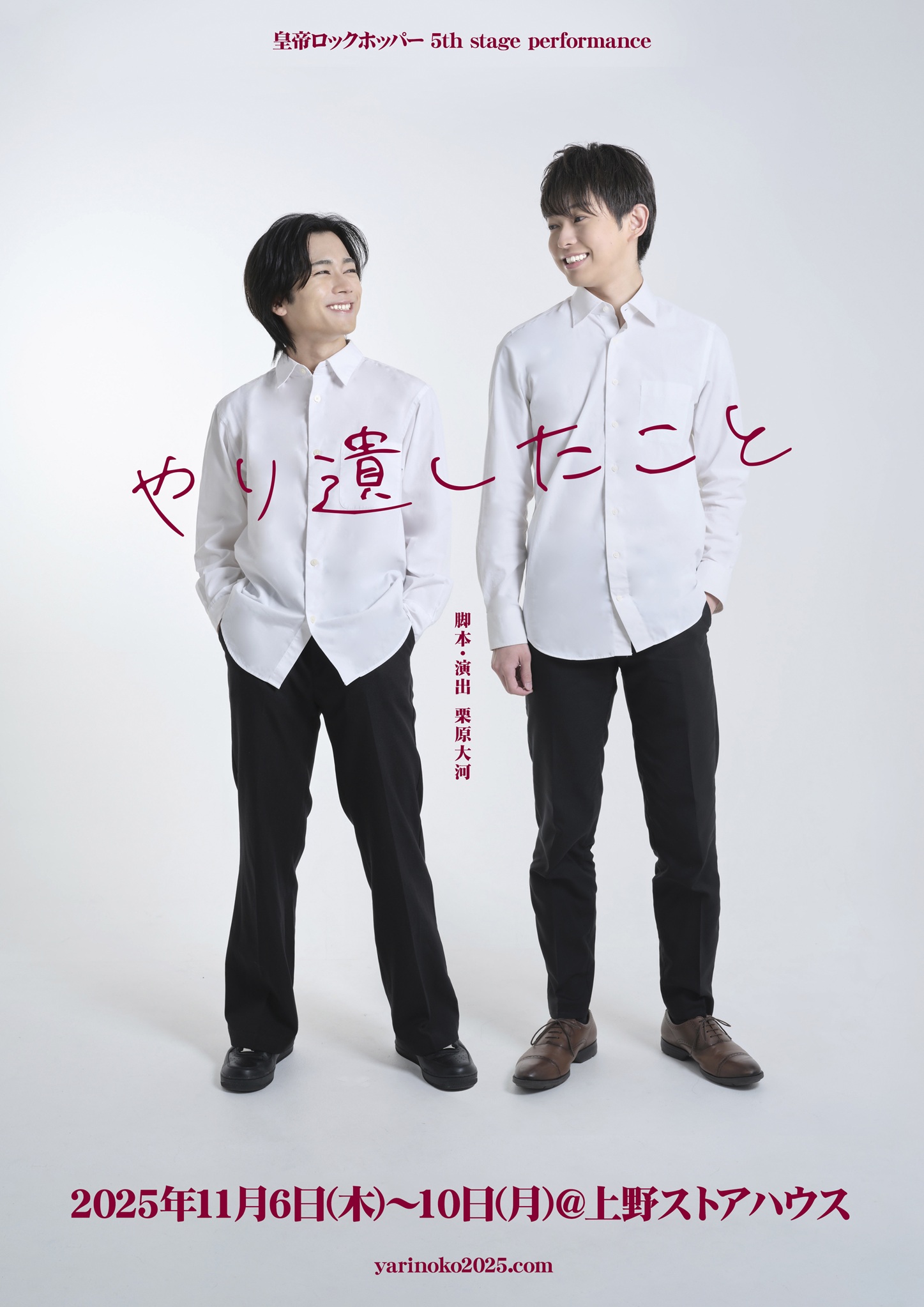 The key visual for Emperor Rockhopper’s 5th stage performance “Things Left Undone,” written, directed and starring Kurihara Taiga, Hayakawa Iori, Sato Tomohiro and others, has been released!