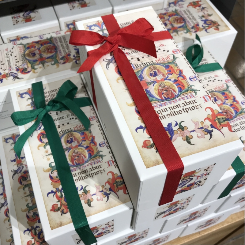 国立西洋美術館を題材にした絵本『森のはずれの美術館の話』(国立西洋美術館限定カバー版)をクリスマス仕様の包装で、絵本に登場するジョン・エヴァレット・ミレイ《あひるの子》をモチーフにしたぬいぐるみをリボンつきで、ご用意します。